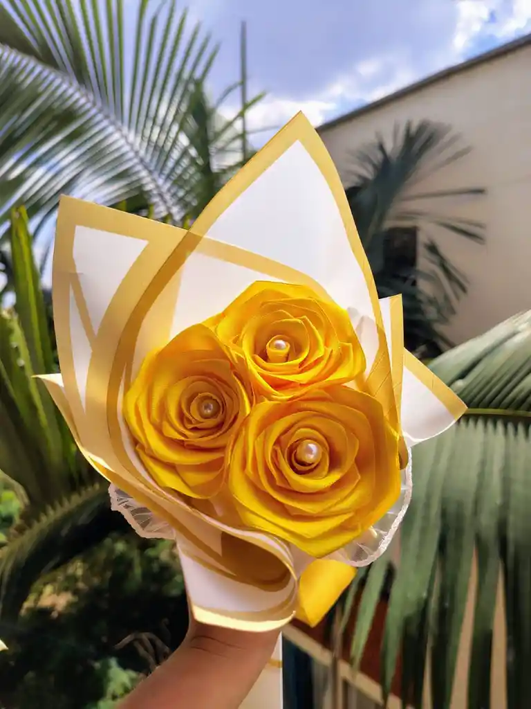 Ramo de rosas eternas x3 con papel coreano blanco de diseño