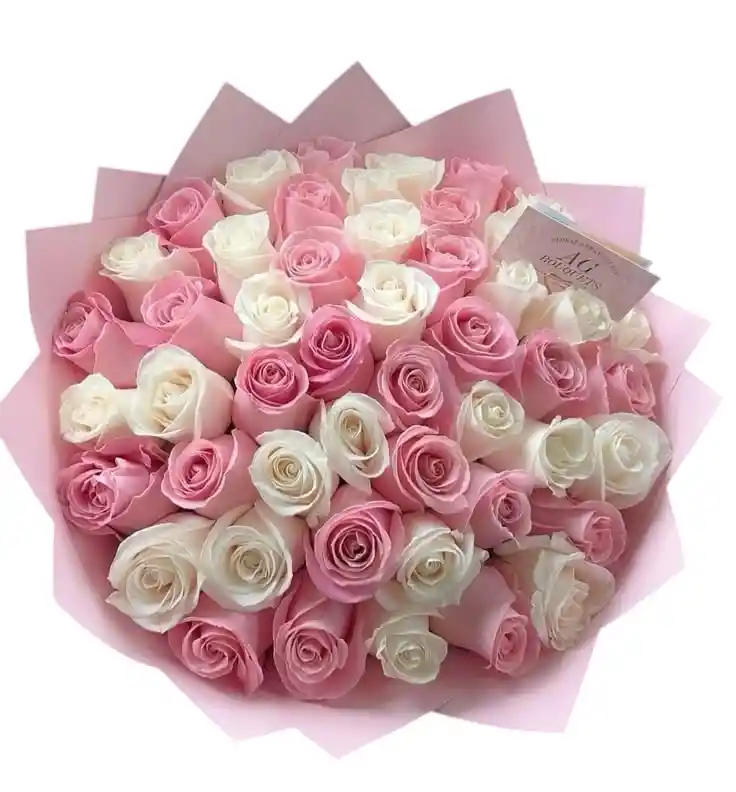 s una declaración de amor en gran formato, diseñada para cautivar por su volumen y contraste armonioso. El arreglo presenta una densa cúpula compuesta por una cuidadosa selección de rosas rojas intensas y rosas en un delicado tono rosa pastel, creando un degradado visual que equilibra la pasión con la ternura.