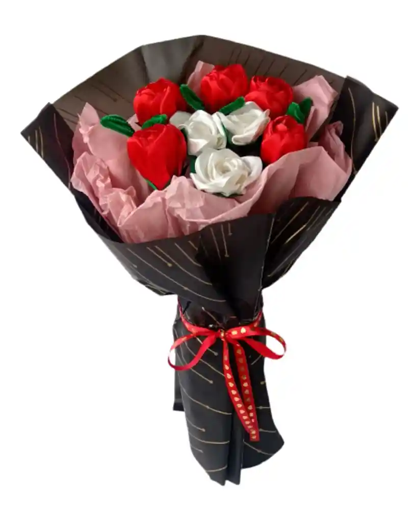 Descubre nuestro Ramo de rosas y tulipanes una opción única y duradera para decorar o regalar. Cada flor está elaborada con amor y sofisticacion Perfecto para celebrar momentos especiales, decorar espacios o sorprender a alguien querido con un detalle original y sostenible.