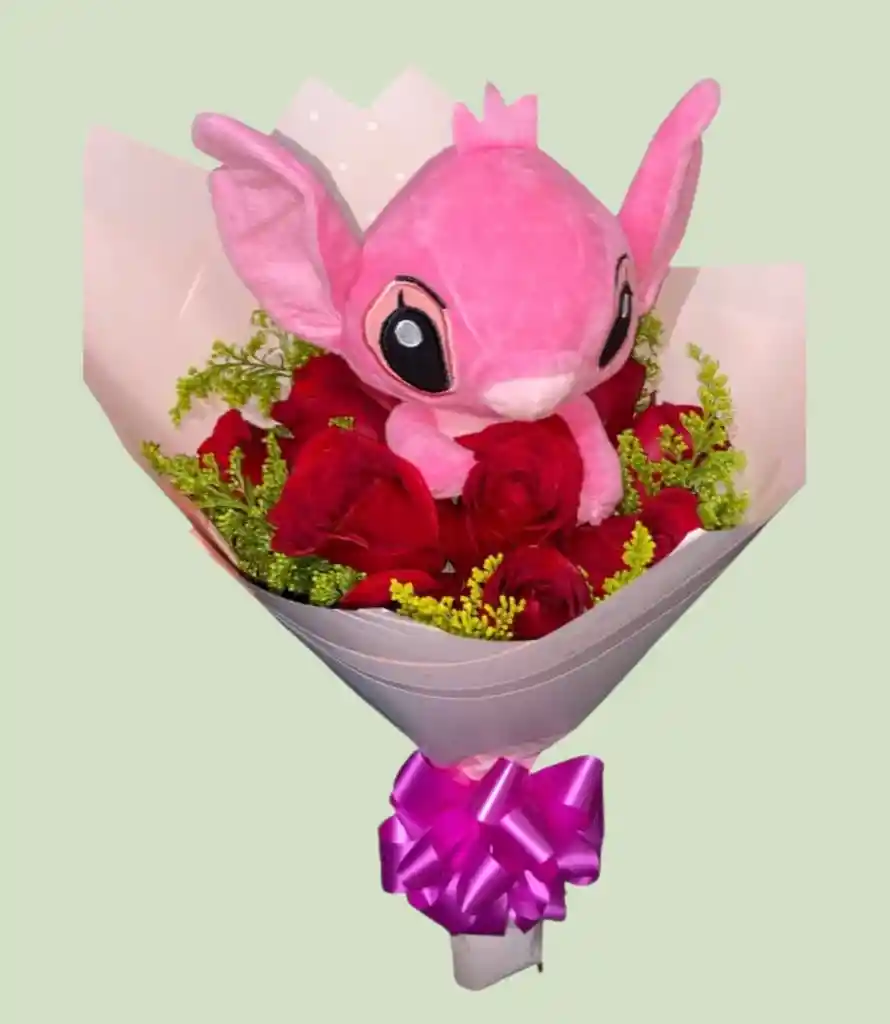 Contiene 10 rosas rojas 1 peluches, Stitch, rosado o azul Decoración