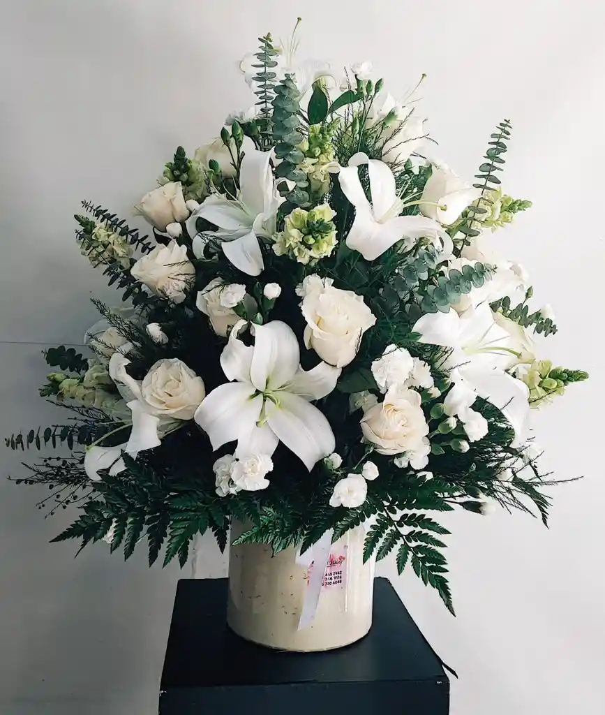 HERMOSO RAMO EN CAJA CON FLORES BLANCAS