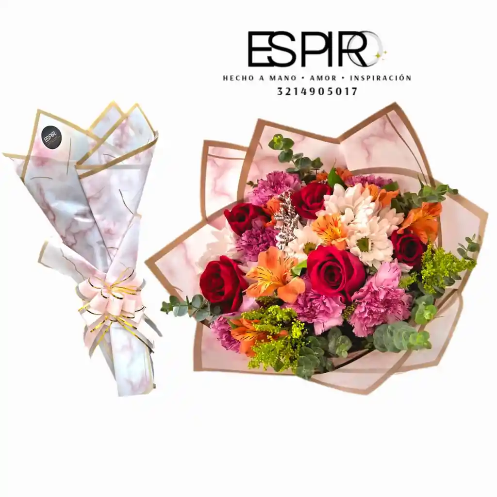 Ramo de flores surtidas a disponibilidad con papel coreano y moño decorativo. Hecho a mano con amor. Luego de confirmar tu pedido, escríbenos para elegir el color del papel y moño. ¡Gracias por preferirnos!