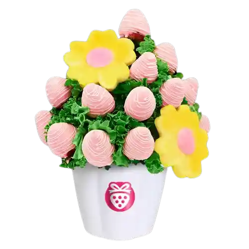 Ramo Frutal Con Exquisitas Fresas Con Chocolate Rosado; Flores de Piña; Botón de Chocolate Rosado. ¡Sorprende Con un Obsequio Único y Original! Mejores Regalos Que Las Rosas o Los Arreglos de Flores; Obsequia Arreglos Frutales Con Decofruta.