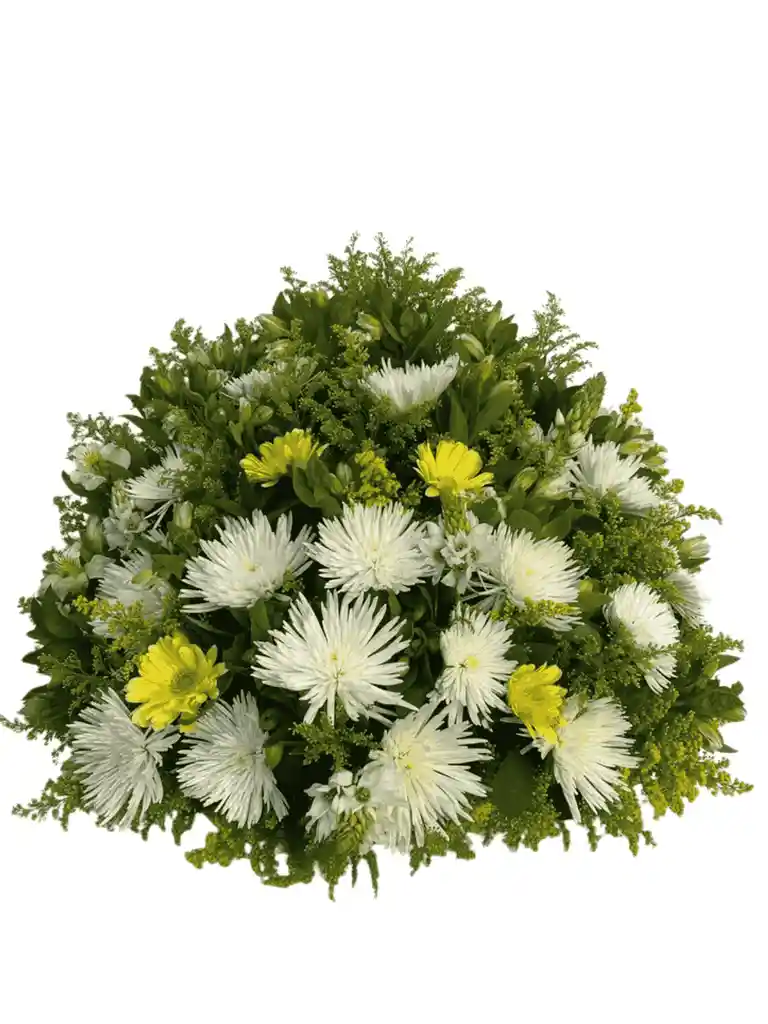 Arreglo fúnebre elaborado con flores frescas y follaje natural, ideal para expresar condolencias y acompañar con elegancia.