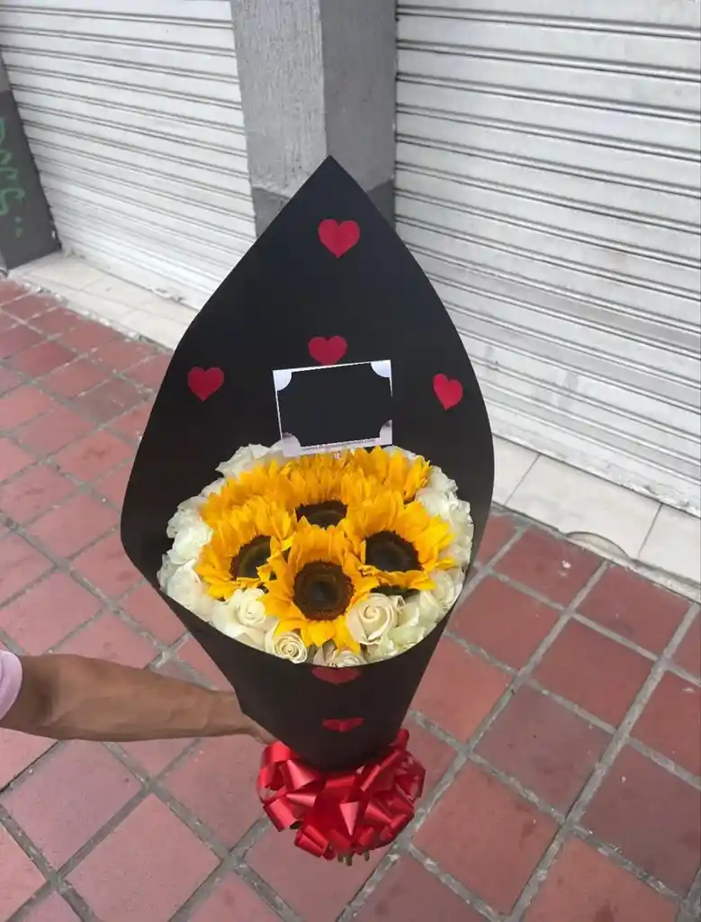 Un detalle que ilumina el corazón. Sorprende con un ramo grande de rosas y girasoles, la combinación perfecta entre amor, alegría y elegancia. Un regalo ideal para demostrar cuánto te importa esa persona especial.