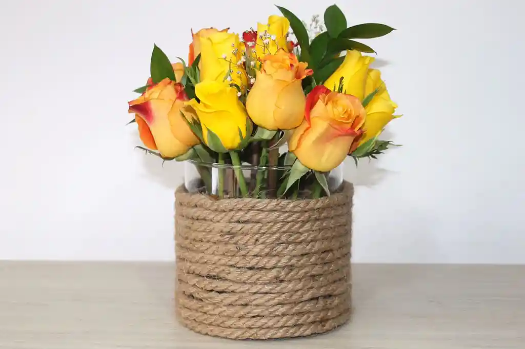 dos colores de rosas, jarron de vidrio, incluye tarjeta de mensaje