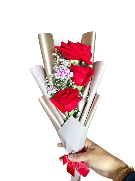 Ramito de 3 rositas y follaje en envoltura de papel coreano