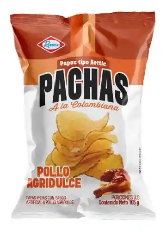 Las Pachas de Pollo Agridulces de Ramo son papas fritas estilo kettle con el característico sabor agridulce del pollo, ofreciendo un delicioso contraste entre dulce y salado en cada bocado, ideales como un snack versátil para disfrutar en diferentes momentos.