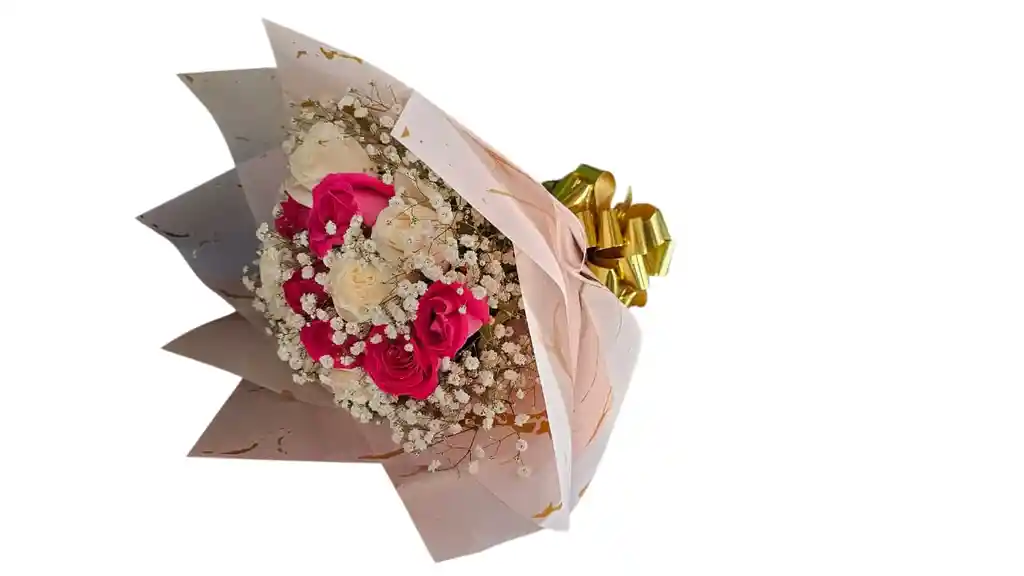 hermoso ramo de rosa con gipsofilia envuelto en papel Luxury...