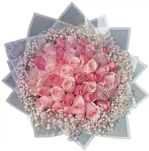 Un encantador ramo de rosas en tonos rosados suaves, rodeado de delicados detalles de gypsophila que aportan un efecto etéreo y romántico. Su envoltura en tonos translúcidos y elegantes, junto con pequeños acentos decorativos, crea una presentación moderna y sofisticada 💐🌸 Diseñado con flores frescas de calidad premium, este arreglo destaca por su equilibrio perfecto entre dulzura y elegancia. Es ideal para sorprender en cumpleaños, aniversarios o para expresar cariño de una manera inolvidable 🌷 Algunas flores o tonalidades pueden variar ligeramente según disponibilidad de temporada, manteniendo siempre la esencia y belleza del diseño. Incluye una tarjeta personalizada gratis para que acompañes tu regalo con un mensaje especial.
