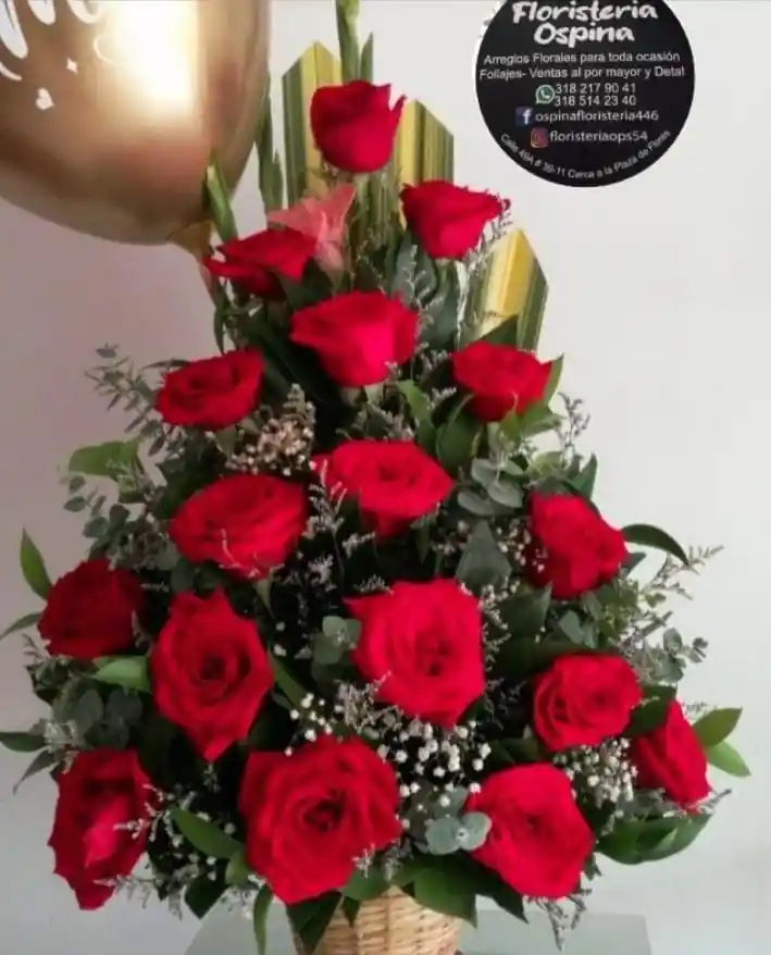 Sumérgete en la intensidad de un amor que arde con fuerza con nuestro exquisito arreglo "Pasión Infinita", una obra floral que habla el lenguaje del deseo y la entrega total. Conformado por majestuosas rosas rojas, símbolo eterno de la pasión, y realzado con follaje fresco y delicadas flores de acompañamiento, este arreglo es ideal para declarar un amor profundo, celebrar un aniversario o simplemente recordar lo irresistible que puede ser un sentimiento verdadero. Disponible exclusivamente en Floristería Ospina, donde cada flor cuenta una historia, este diseño es elaborado con delicadeza y entrega. El tipo de base y empaque depende de disponibilidad en tienda, pero siempre será presentado con elegancia y buen gusto. 💌 ¿Deseas incluir una tarjeta? No olvides solicitarla al momento de tu pedido. 📜 Sugerencia de mensaje: "Tu amor enciende mi alma, y cada rosa de este arreglo lleva un pedacito de mi corazón para ti." ✨ Para hacerlo aún más especial, puedes acompañarlo con un detalle adicional de nuestra tienda: 🍫 Chocolates 🍷 Licor 🧸 Peluches 🎈 Globos Déjate llevar por la magia de los sentimientos... y déjalo en manos de Floristería Ospina.