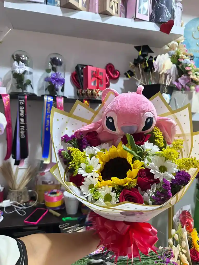 STICH ROSADO CON RAMO DE GIRASOL SURTIDO