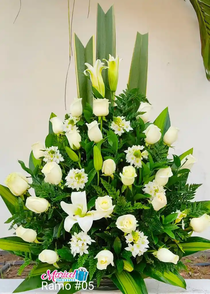 elaborado en base de vidrio 24 rosas, hojas de dracena, lirios, follaje, helechos, ruscus y tarjeta personalizada