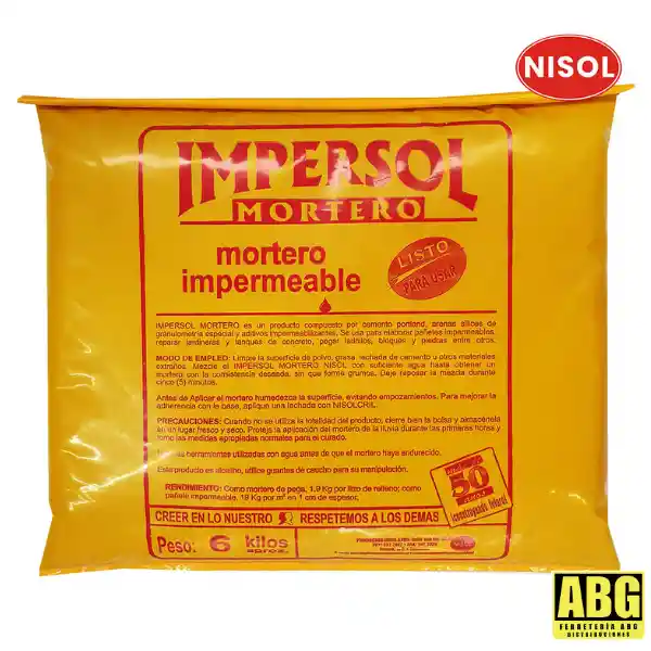 MORTERO NISOL X6KG, MEZCLA DE ARENA Y CEMENTO LISTA PARA USAR, SOLO ES NECESARIO APLICAR AGUA.