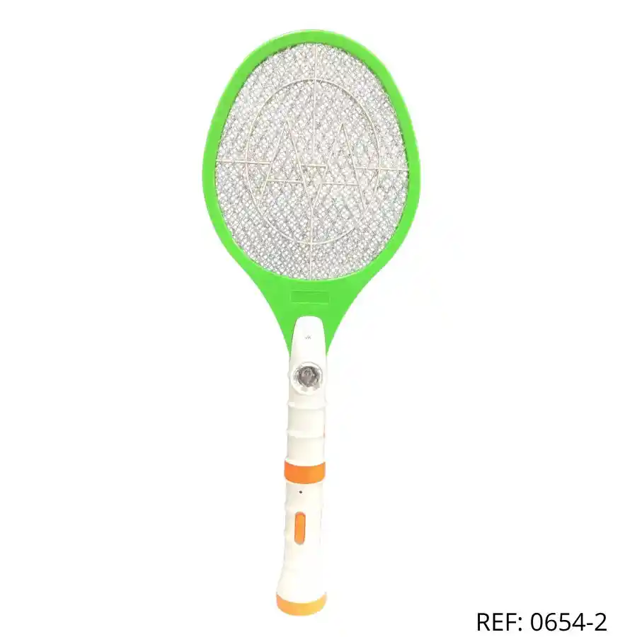 Raqueta eléctrica verde para insectos. Con linterna y diseño ergonómico
