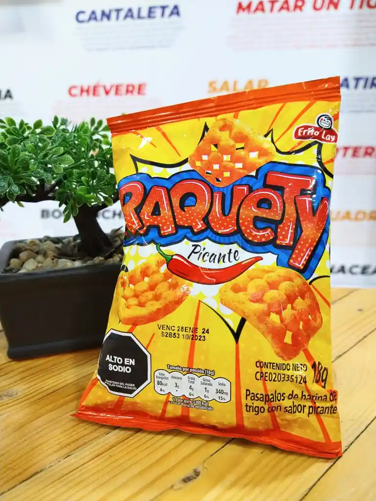 Es un snack salado, crujiente y con sabor a picante con forma a una pequeña raqueta. Presentación 18gr.