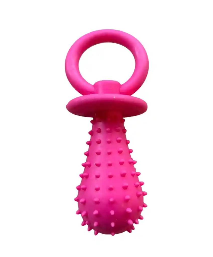 Rasca Encías En Forma De Chupo Con Relieve Y Cascabel Pequeño Color Rosado 11 Cm