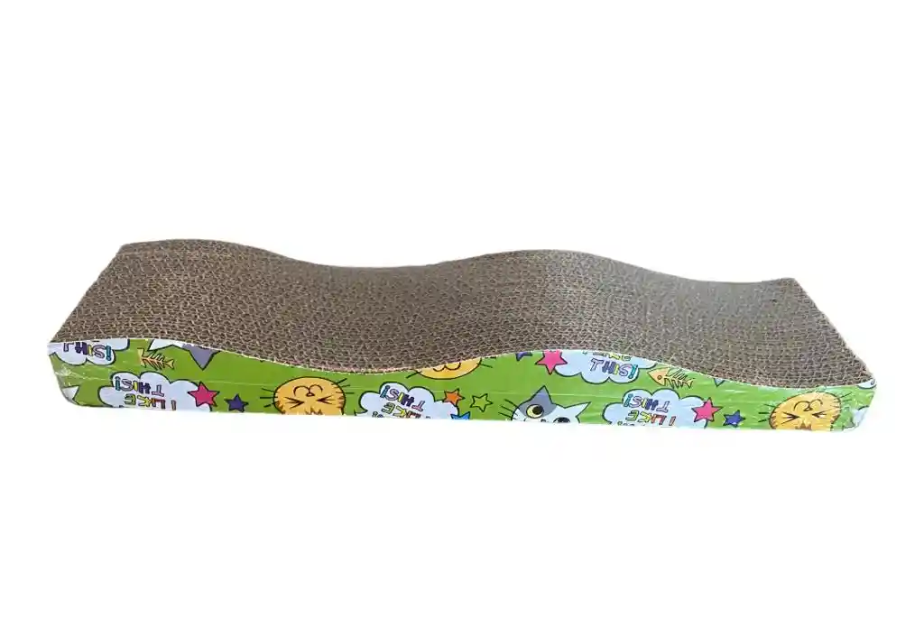 Rascador de carton con para gatos, incluye catnip medidas: Alto 5 cm ancho 13 cm Largo 45 cm