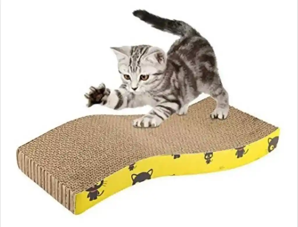 Rascador para gato ondulado en cartón corrugado 48 x 11 x 4.7 cm. Incluye hierba para atraer a tu gato