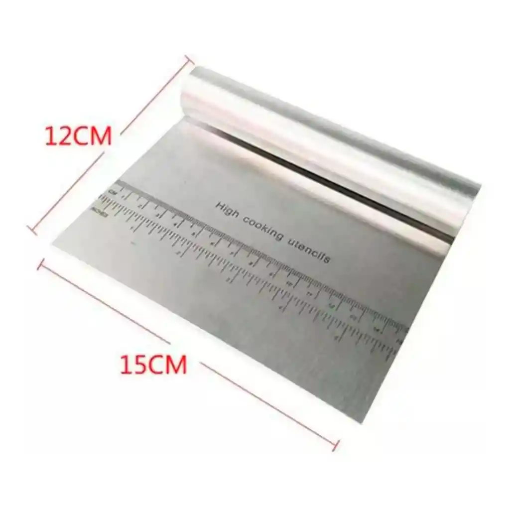 Pala de Repostería de Alta Calidad. Puede cortar, moler, rebanar, raspar, recoger y medir con la misma herramienta. El extremo en punta y la cuchilla grande hacen que el traspaso de ingredientes sea fácil. Pose guía para medir incorporada en el borde para cortar piezas de masa uniformes. Material de acero inoxidable, para una duración eterna... Fácil de usar y limpiar. Tamaño: 15 cm x 12 cm