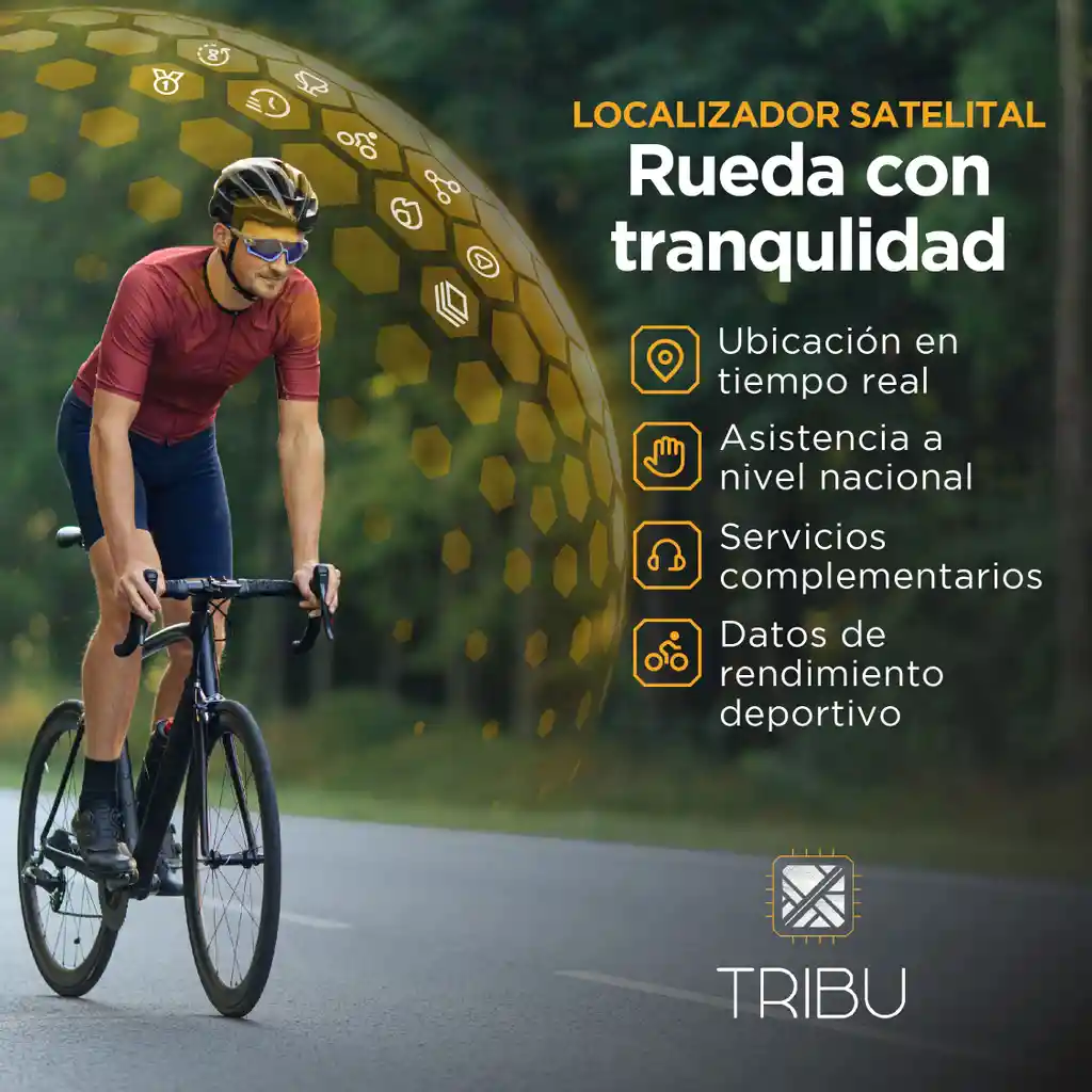 Servicio de monitoreo satelital para Ciclistas, ofrecemos asistencia por robo y accidente a nivel nacional 24/7. A traves de un localizador de ultima tecnologia podras tener la ubicacion de tu bicicleta en tiempo real a traves de la aplicacion movil en donde podras medir tu rendimiento, ver historial de rutas, clima y otras funciones de seguridad. el dispositivo es autoinstalable, pequeño y camuflado, funciona para cualquier tipo de bici.Esta suscripción incluye GPS, App movily servicios de asistencia por 12 meses.
