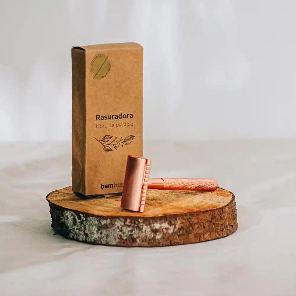Máquina de afeitar en acero inoxidable.Alza la voz contra el plástico con esta rasuradora/máquina de afeitar reutilizable de doble filo con cuerpo en acero inoxidable texturizado y ergonómico. Este producto es diferente a una rasuradora convencional plástica debido a que su cuerpo es totalmente reutilizable y te durará por muchísimos años. Lo único que debes hacer es cambiar su cuchilla cada que lo requieras. Incluye 5 cuchillas de repuesto