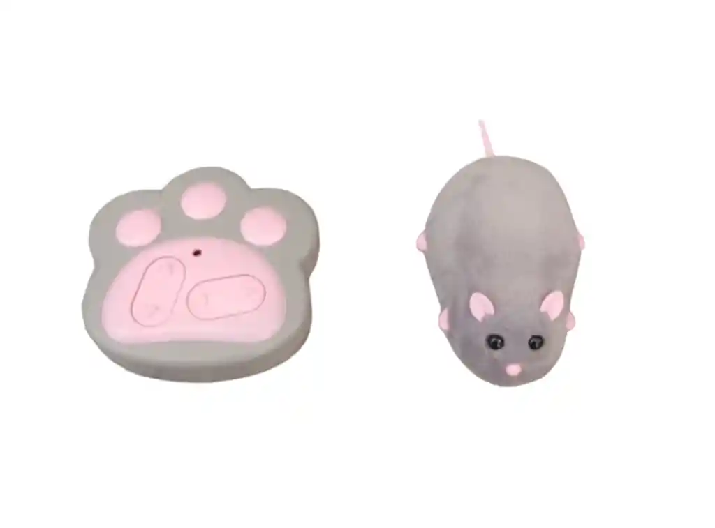 Ratón a control remoto para gatos, simula un ratón real tiene ruedas que permiten su movimiento adelante y atrás, permitiendo un cambio de dirección. Incluye las pilas