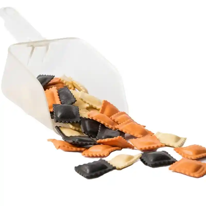Mini ravioli monstruosamente delicioso de halloween rellenos de carne. ¡Disfrazados de naranja, negro y blanco para acompañar las celebraciones y alegrar a los más pequeños!