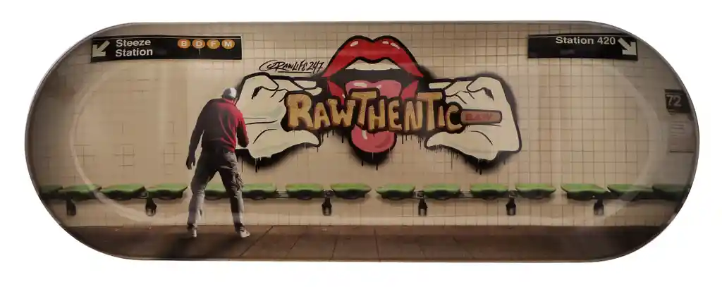 La Bandeja RAW Graffiti 2 Skate es un imprescindible para los entusiastas del skate y los conocedores del arte callejero. Elaborada en la icónica forma de una tabla de skate, esta bandeja de rodar encarna la artesanía urbana con sus vívidos gráficos inspirados en el graffiti. ¡Vamos a sumergirnos en los detalles! Diseño: La bandeja presenta un diseño RAWthentic de graffiti de metro, añadiendo una vibra audaz a tu experiencia de rodar. Forma: Modelada después de una tabla de skate, rinde homenaje a la cultura del skate. Patrón de Agarre: La parte trasera de la bandeja cuenta con un patrón de agarre de skate, asegurando que tus hierbas permanezcan en su lugar. Seguridad: Los bordes enrollados evitan derrames, y la parte trasera reforzada proporciona espacio adicional para enrollar y lados curvos. Dimensiones: Longitud: 6.3 pulgadas Anchura: 16.8 pulgadas Altura: 1.5 pulgadas ¡Acepta la vibra callejera donde la funcionalidad se encuentra con el arte con la Bandeja RAW Graffiti 2 Skate!