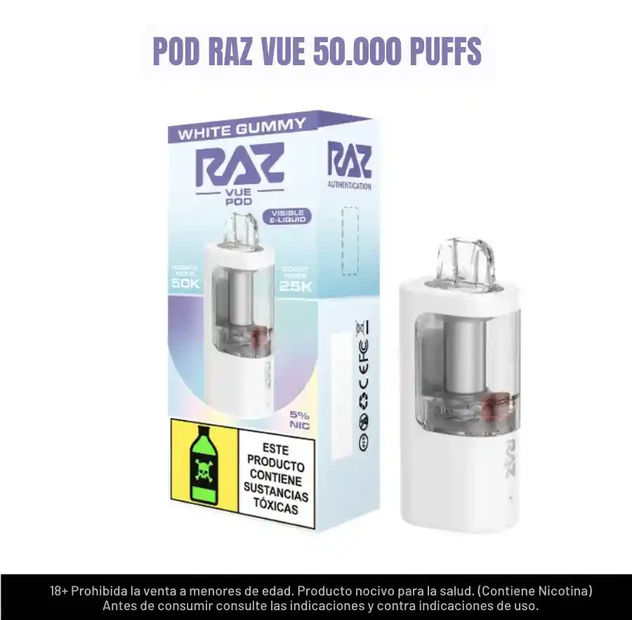 GOMITAS DE PIÑA MENTOLADO - Recarga para dispositivo Raz Vue 50.000 Puffs. 5% nicotina. Prohibida su venta a menores de edad, contiene nicotina.
