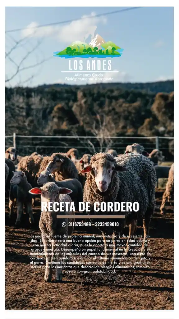 Gran fuente de proteína animal, muy nutritiva y de excelente calidad. El cordero será una buena opción para gatos y perros, pues aportará la cantidad necesaria de grasas y energía. Desempeña un papel fundamental en la creación y el mantenimiento de los músculos de las mascotas. Ayudará a estimular el sistema inmunológico. Posee vitaminas y minerales, y es una gran alternativa para las mascotas que desarrollan alergias alimenticias.