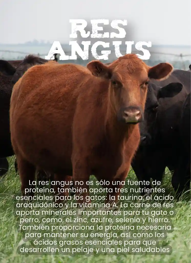 Su principal rasgo distintivo es su intenso y exquisito sabor, además su jugosidad y su excelente grado de marmoleado. Este último se debe a la distribución de la grasa que el animal va generando dentro de las fibras musculares. La carne de res con genética Angus posee ácidos grasos Omega 3 y 6, por lo que es baja en colesterol. También aporta hierro, vitaminas B13 y B3.