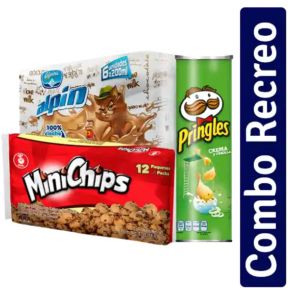 Leche Alpin Chocolate Caja 200 mL x6Galletas Minichips Chocolate x12Pringles Crema y cebolla 124g