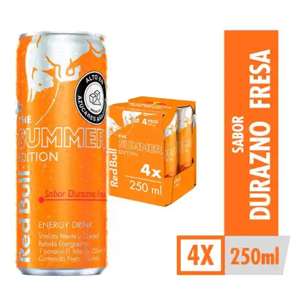 Pack Contiene 4 Unidades de 250 mL c/u. The Summer Edition Sabor a Durazno - Fresa. Es Una Bebida Energizante Reconocida Por Toda Clase de Atletas$ Por Profesionales y Estudiantes Activos Alrededor Del Mundo$ Así Como Por Conductores Que Cubren Largas Distancias Alrededor Del Mundo.