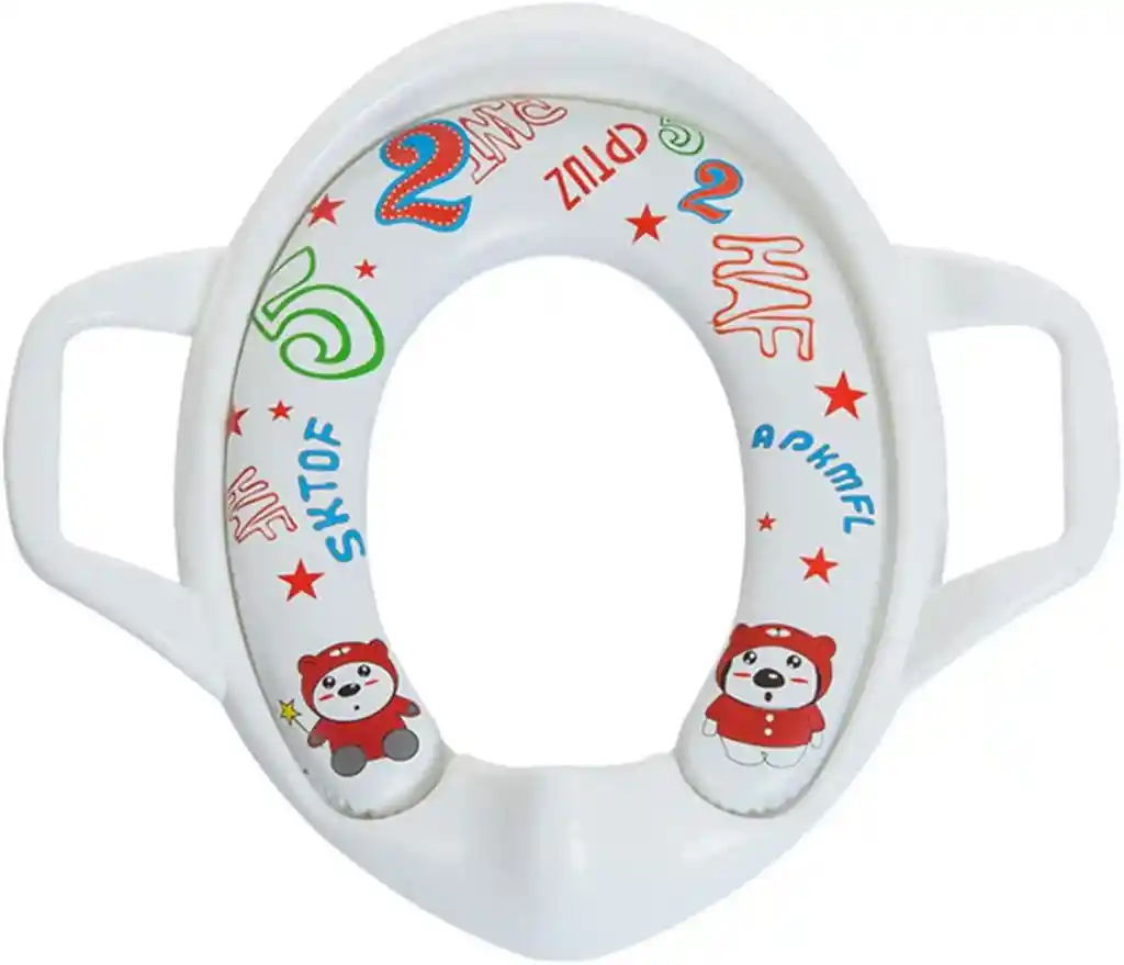Reductor Adaptador De Inodoro Acolchado Bebe sanitario Agarraderas Blanco Fabricado en polipropileno. Apto para niños de 18-36 meses. La edad mínima para su uso es 1 años. El máximo peso soportado es de 50kg. Posee tapa, manijas y asiento removible. Su asiento es acolchonado. Posee base antideslizante. Su diseño es antisalpicaduras. Dimensiones: 5cm de alto x 29cm de ancho x 37cm de longitud.