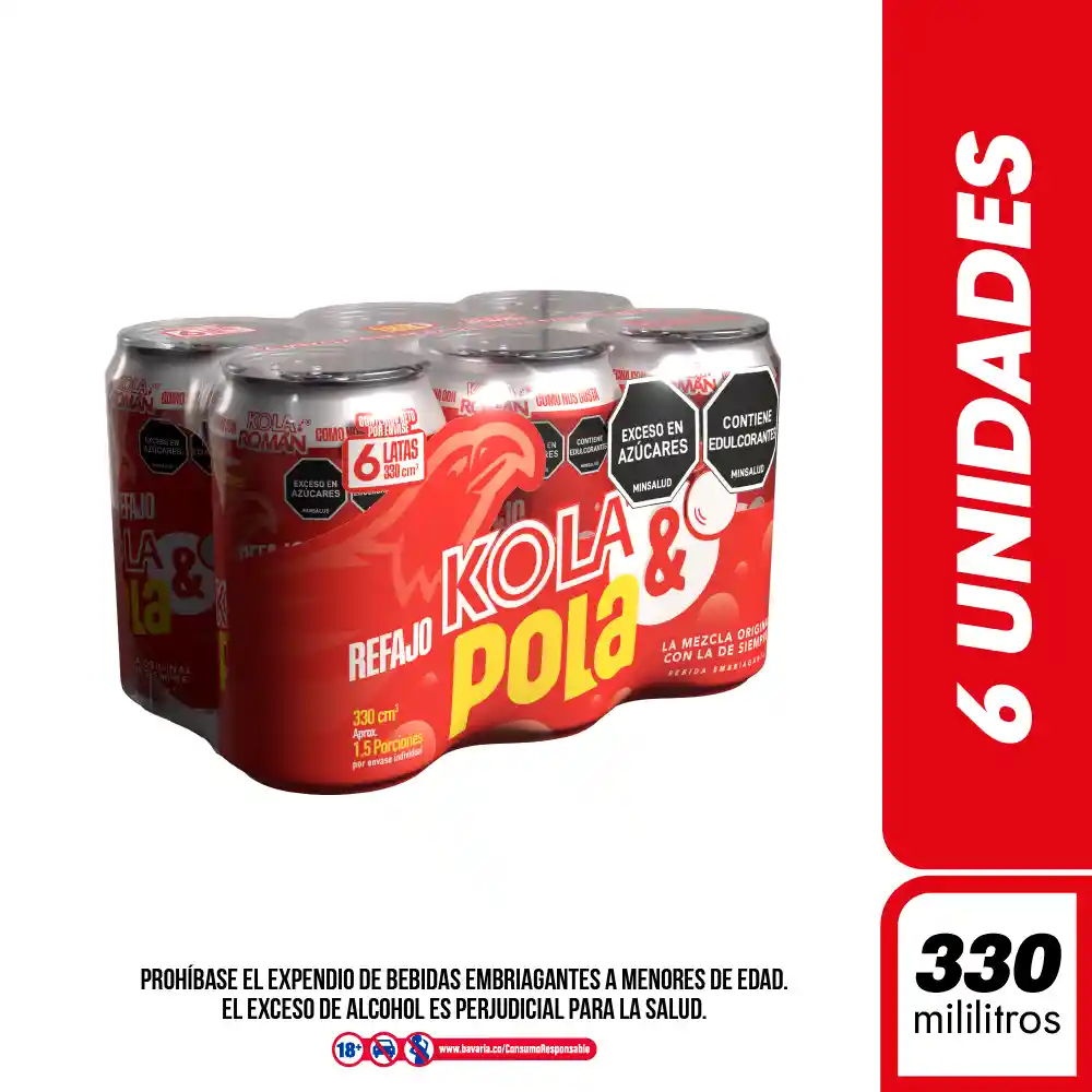 Cola & Pola es una bebida colombiana tipo refajo, lanzada en 1993 por Bavaria, que combina cerveza y gaseosa (cola), caracterizada por su sabor refrescante, amargo y dulce. Tiene bajo contenido de alcohol (\(2\%\text{ABV}\)), siendo ideal para acompañar comidas como carnes a la parrilla.