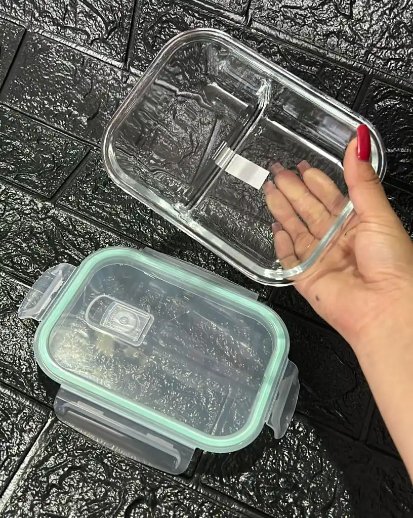 REFLACTARIA DE VIDRIO 650ML 2 DIVISIONES TAPA LONCHERA O PORTACOMIDA COD.3002