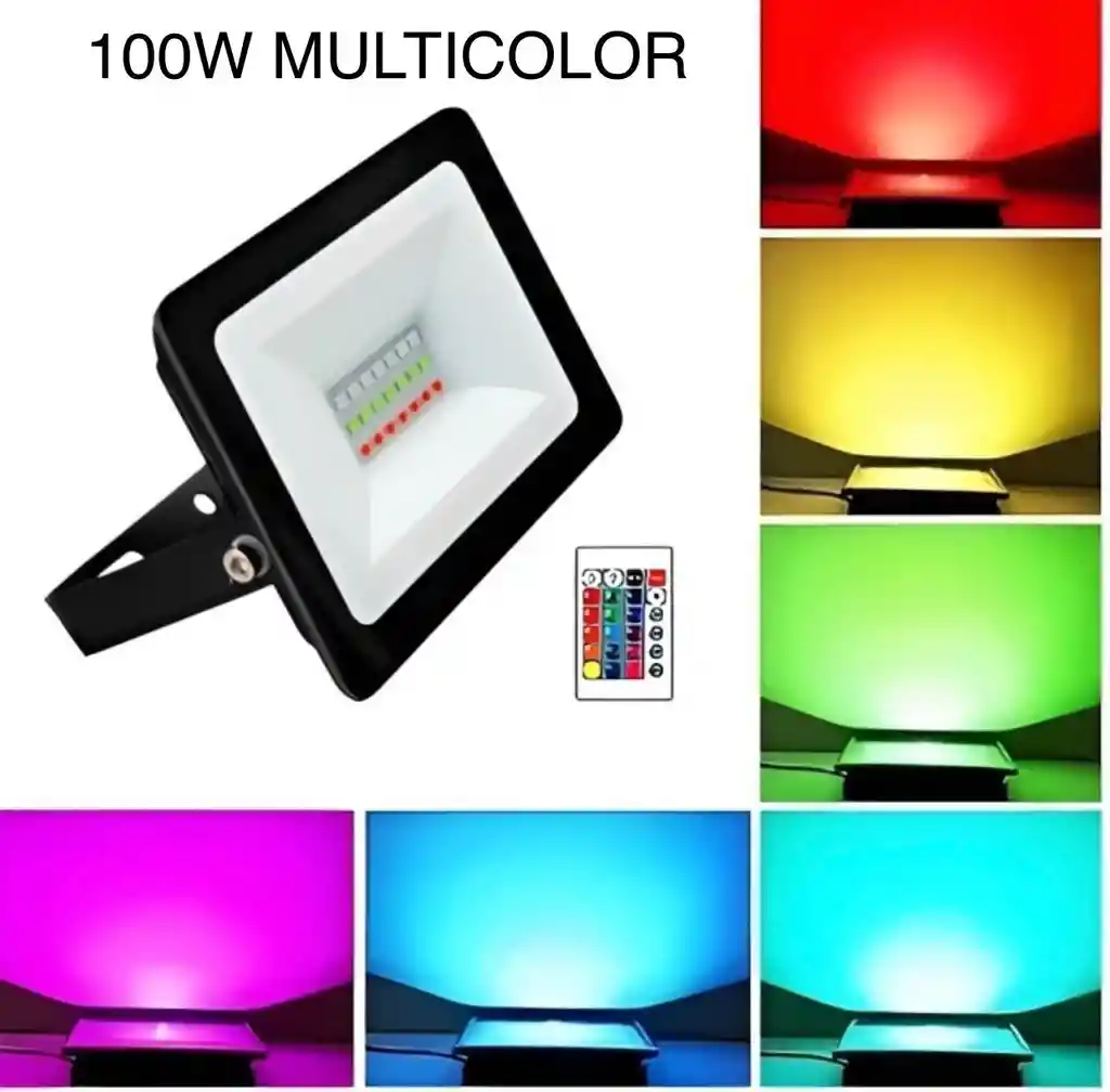 Reflector Led Multicolor 100w Con Control Para Exteriores