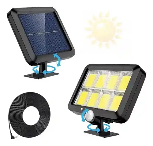 Iluminación de alta calidad las luces solares mejoradas para uso exterior cuentan con 108LED y un diseño de lente curvada y ópticamente integrada para una mayor transmisión de la luz y un ángulo de iluminación de hasta 180, lo que ilumina un área de 30 metros cuadrados y proporciona una iluminación supe brillante y amplia. Esto crea un entorno luminoso y seguro para los peatones por la noche. Focos solares para jardín con diseño dividido En comparación con las luces solares convencionales, hemos separado el panel solar del cuerpo principal de la luz. El panel solar ampliado se carga rápidamente y convierte la energía solar en electricidad para iluminar con mayor eficacia. El diseño dividido permite instalar la luz solar en zonas bloqueadas por el sol, y también iluminar rincones oscuros. 3 modos de iluminación: las luces de seguridad solares súper brillantes tienen un sensor de movimiento sensible incorporado, Tiene 3 modos: modo de detección de cuerpo humano, modo de detección de cuerpo humano + modo de luz media, siempre luz baja. Equipado con mando a distancia, 3 modos se pueden cambiar como desee. Clase de impermeabilidad IP65 Hecho de material ABS de alta calidad y duradero, clase de protección estándar internacional IP65, diseño compacto. Resistente al calor, las heladas y el óxido, la luz solar para exteriores puede soportar todo tipo de condiciones climáticas exteriores adversas. Ideal para su uso en diversos escenarios como balcones, pasillos, patios, jardines, escaleras, fachadas, garajes y pasarelas con luces solares. Fácil de instalar y eficiente puede instalar fácilmente el panel solar en un lugar soleado con el cable impermeable de 5 m y los tornillos incluidos. Los paneles solares tienen una eficiencia del 22% en la conversión de electricidad en energía verde, ahorrando mucho dinero en las facturas de electricidad y salvando la energía y el medio ambiente.