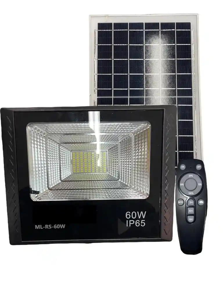"*Reflector solar 60w tipo alumbrado público. *Potencia 60w (solar) *Fotosensor incluido para Encendido/Apagado automático. *Tensión 6V. *Control remoto para configurar los niveles de brillo de la lampara. *Color de luz 6.500K (BLANCA). *Protección IP65 Sellado hermético para total impermeabilidad. *Duración batería 10-12 horas. *Tiempo de carga 5-6 horas. *Panel solar : 30w -5.3A *Material aleaciones de aluminio y vidrio. *Larga Vida Útil de 30.000 Horas. "
