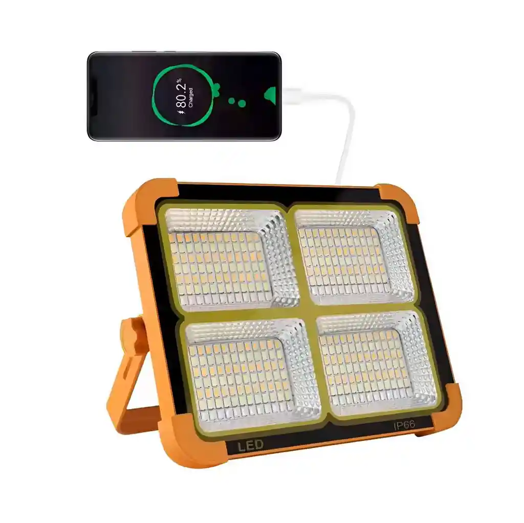 Este reflector LED solar de alta potencia es la herramienta definitiva para iluminación exterior y situaciones de emergencia, ofreciendo una versatilidad inigualable gracias a su diseño portátil y resistente. Equipado con múltiples módulos LED de alta intensidad, proporciona una luz brillante y uniforme ajustable en diferentes tonos, además de contar con un panel solar integrado de gran eficiencia que permite su recarga en cualquier lugar. Su robusta estructura con protección IP66 garantiza durabilidad ante condiciones climáticas adversas, mientras que su función de Power Bank integrada te permite cargar dispositivos móviles mediante USB, convirtiéndolo en el aliado ideal para camping, trabajos nocturnos, reparaciones mecánicas o como fuente de luz preventiva en el hogar. Ficha Técnica: Voltaje: 4.2V Corriente de entrada: 2A Potencia de salida USB: 7A Alimentación LED: 5V Fuente de energía: Panel Solar integrado y recarga por USB Funciones adicionales: Power Bank para carga de dispositivos móviles Tiempo de descarga: De 7 a 15 horas (según el modo de iluminación) Modos de luz: Luz fría, cálida, neutra y modo de advertencia SOS Dimensiones: 210mm x 170mm x 55mm Grado de protección: IP66 (Resistente a polvo y chorros de agua potentes) Material: Carcasa de alta resistencia con protectores de esquina contra impactos Accesorios: Cable de datos incluido Soporte: Manija ajustable de 180 grados para posición de pie o colgado Políticas de Garantía: La garantía de este producto es de 30 días y cubre exclusivamente defectos de fabricación en el sistema LED, el panel solar o el puerto de carga. No se aceptarán reclamaciones por daños derivados de un uso inadecuado, tales como golpes críticos, rotura de cristales, inmersión total en agua o manipulación interna de sus componentes electrónicos. Para validar cualquier cambio o devolución, es requisito indispensable que el comprador entregue el producto en su empaque original, con todos sus accesorios y sin señales de maltrato físico que alteren su estado original de venta.