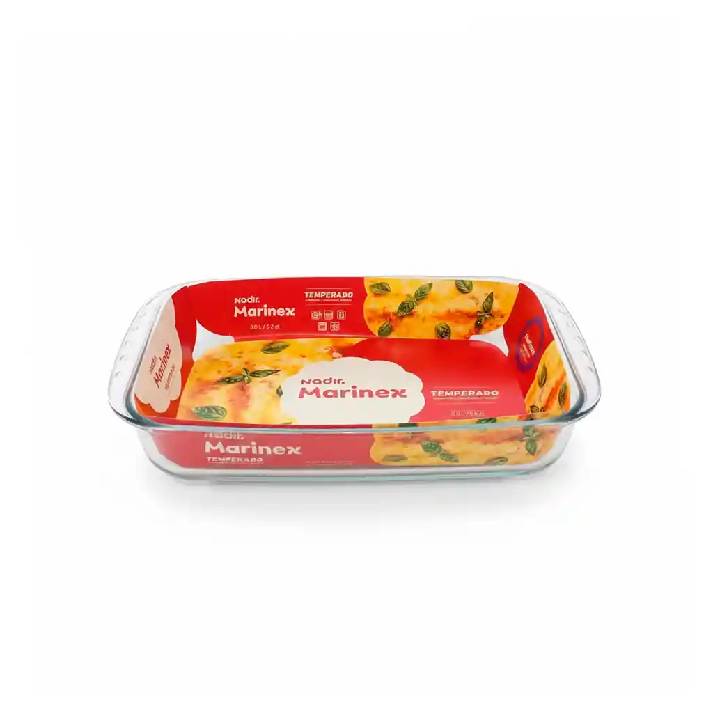 Su amplio volumen la hace ideal para preparaciones familiares grandes como lasañas, pavos o asados. Fabricada por Nadir Marinex, este material garantiza una excelente durabilidad y resistencia a choques térmicos moderados. Cuenta con bordes redondeados y asas laterales integradas en el vidrio para facilitar un agarre seguro al sacarla del horno. Diseñada para soportar altas temperaturas, permitiendo una cocción uniforme de los alimentos. Es ideal para hornear, servir directamente en la mesa gracias a su transparencia elegante, y almacenar alimentos en la nevera. El vidrio no poroso no absorbe olores, sabores ni manchas, asegurando que tus preparaciones mantengan su sabor original. Su superficie lisa permite un lavado rápido a mano y es totalmente apta para su uso en lavavajillas. Material libre de BPA y sustancias tóxicas, proporcionando una opción de cocina saludable para toda la familia. Producto de la línea Marinex Seleta, reconocida internacionalmente por sus estándares de calidad en menaje de vidrio. Se recomienda evitar el contacto directo con superficies frías cuando la refractaria esté caliente para prevenir choques térmicos. Cuenta con el respaldo y la calidad de Marinex, líder en recipientes de vidrio para el hogar. Se entrega en un empaque protegido para asegurar que la pieza llegue en perfectas condiciones hasta la puerta de tu hogar.. Estos productos han sido ambientados, los accesorios adicionales no están incluidos y su color puede variar por la luz.. .
