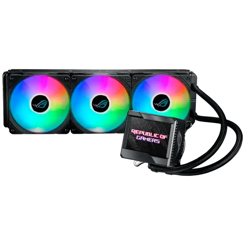 Especificaciones: Bloque de agua Dimensión del bloque de agua: 78.15 x 87.5 x 81 mm Material del bloque (placa de CPU): Cobre VENTILADOR integrado: Sí Velocidad: 4,800 RPM +/- 10% Presión del aire: 3.23 mmH2O Flujo de aire: 19.41 CFM Bomba Solución de bomba: Bomba Asetek de séptima generación Velocidad del motor: 800 - 2,800 +/- 300 Energía: 12V DC, 2W, 0.3A Radiador Dimensión del radiador: 121 x 394 x 27mm Material del radiador: Aluminio Tubo: Tubo de goma con mangas Longitud del tubo: 380 mm Ventilador Ventilador: ROG Designed ARGB Radiator Fan Tamaño: 3 x Fan Slots (120mm) Dimensión: 120 x 120 x 25mm Velocidad: 600- 2200 RPM +/- 10% Presión estática: 3.88 mmH2O Flujo de aire: 70.07 CFM Ruido: 36.45 dB(A) Modo de control: PWM/DC Compatibilidad Intel: LGA 1700, 1200, 115x, 2011, 2011-3, 2066 AMD: AM5, AM4, TR4* Garantía: 60 Meses