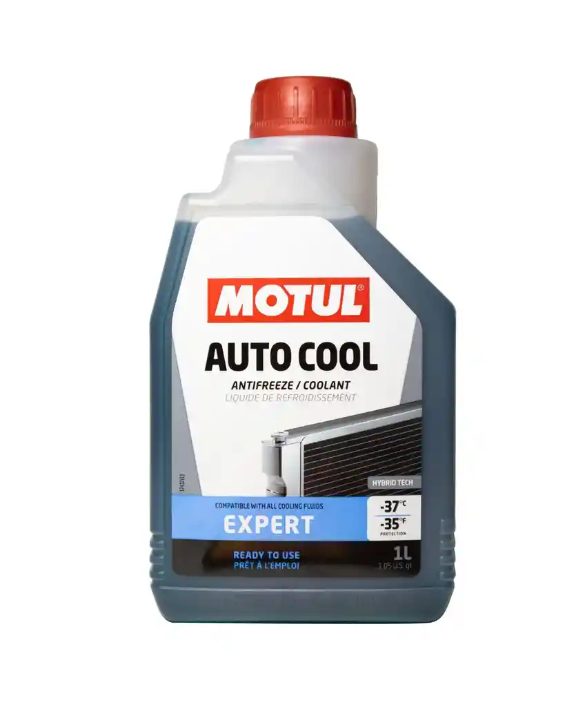 MOTUL AUTO COOL EXPERT -37 ° C Es un líquido refrigerante de larga duración listo para usar, a base de Mono etilenglicol, que utiliza inhibidores híbridos (orgánicos y no orgánicos) conocido como “Hybrid Tech”. Este producto puede ser mezclado con todos los refrigerantes con base Mono etilenglicol Recomendado para usar en todos los sistemas de refrigeración. Protección de circuitos de refrigeración contra la congelación y corrosión de metales ferrosos y no ferrosos. Buen intercambio de calor que permite una refrigeración eficiente del motor. Compatible con juntas, mangueras y componentes de plástico. La tecnología híbrida promueve la transferencia de calor para una mejor refrigeración y, por tanto, un mejor funcionamiento del motor. Basado en la sinergia Si-P-OAT de Silicatos, Fosfatos y ácidos orgánicos, garantiza Protección anticorrosión eficaz y estable en el tiempo.