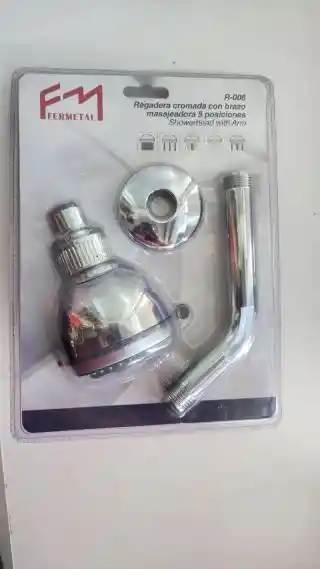 REGADERA CROMADA CON BRAZO - MASAJEADORA 5 POSICIONES