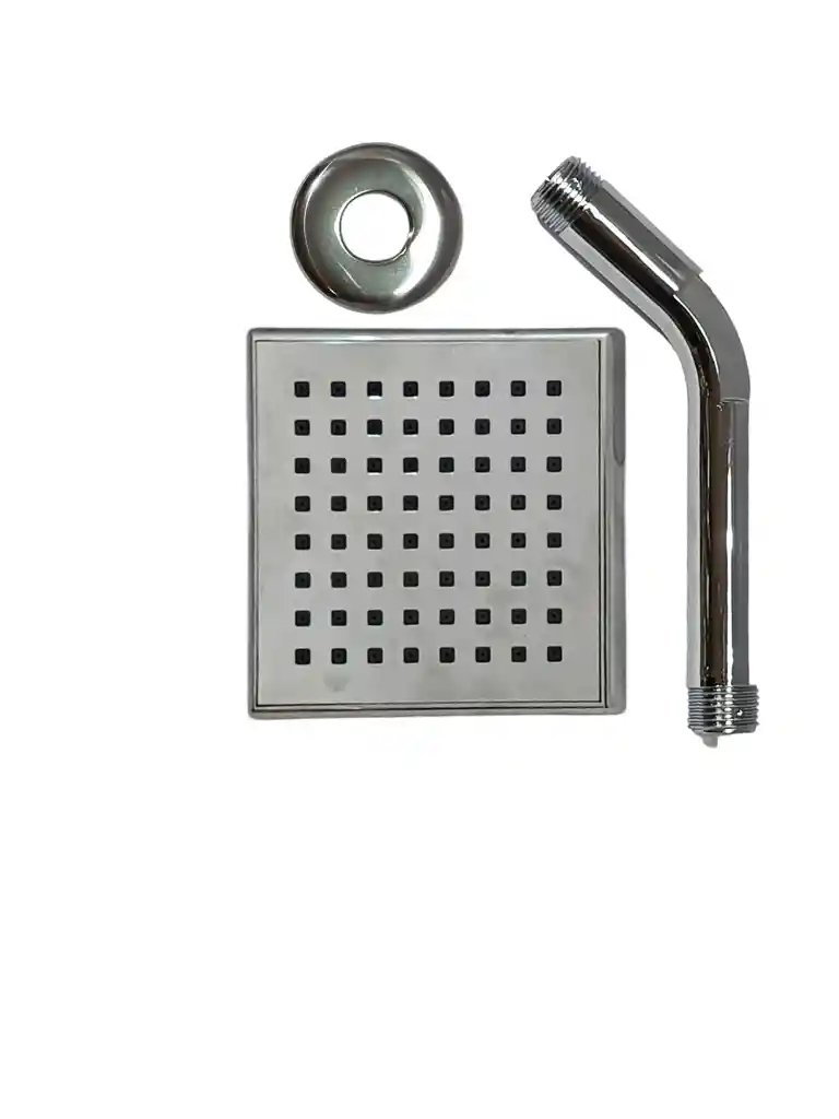 REGADERA CUADRADA •TUBO REDONDO DE 15 CM CROMADO •MATERIAL: ABS •ESCUDO REDONDO CROMADO •REGADERA DE 4” CUADRADA •COLOR: CORMADO