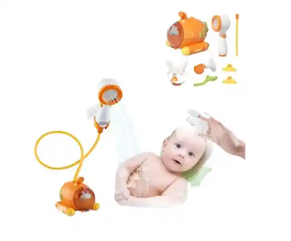 Haz que la hora del baño sea la parte más divertida del día con este submarino eléctrico para bebés. Su regadera de agua suave y accesorios de juego estimulan los sentidos del niño mientras disfrutan de un baño tranquilo y entretenido. Características principales: • Regadera de agua suave: flujo ligero ideal para bañar y lavar el cabello del bebé sin incomodidad. • Diseño educativo: fomenta la imaginación, la coordinación y la diversión con su forma colorida de submarino. • Resistente e impermeable: fabricado en plástico duradero con compartimento de baterías sellado. • Juguete multifuncional: incluye cepillo con cerdas suaves para masajes y lavado de cabello. • Uso versátil: perfecto para bañera, piscina o juegos de agua al aire libre. Especificaciones: • Tamaño: 12 × 17.5 × 11.5 cm • Color: naranja unisex • Alimentación: pilas AAA (incluidas) • Material: plástico resistente e impermeable