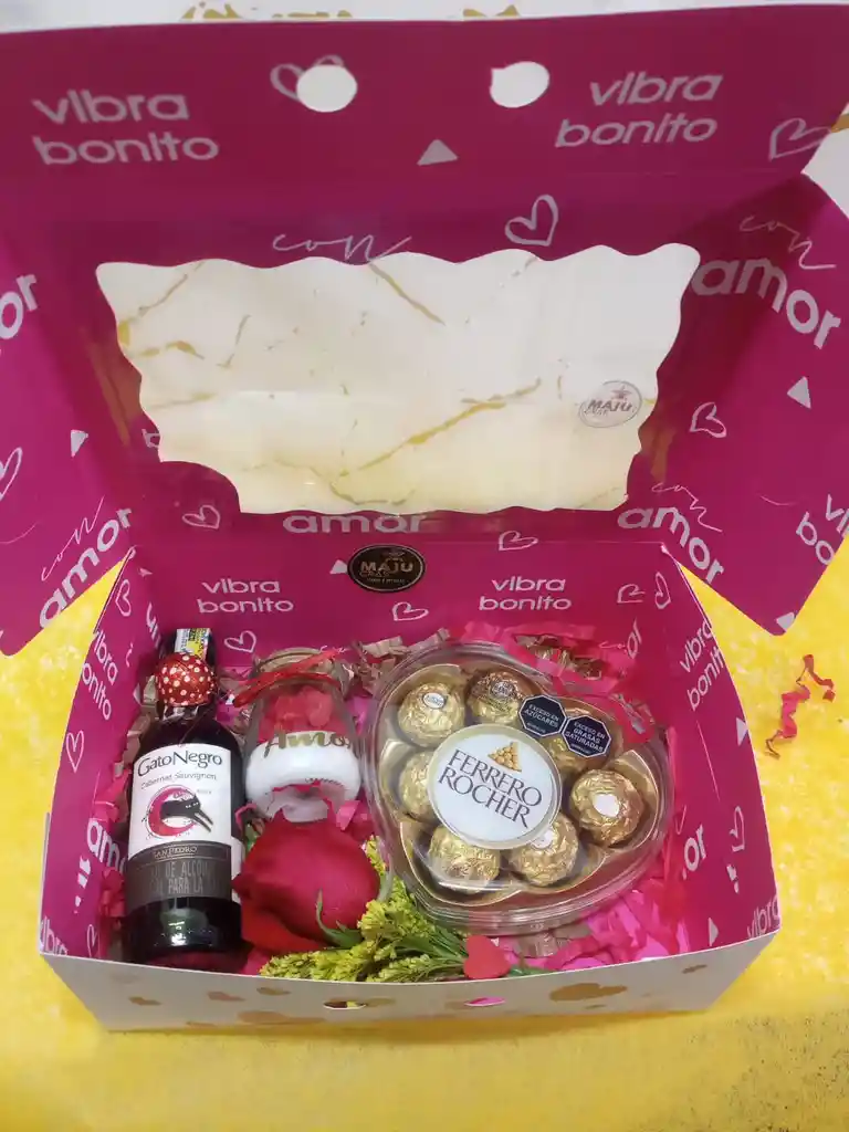 Hermosa caja, detalle con Solitario de rosa Ferrero * 8 Corazon Vino gato negro Vela aromatizada