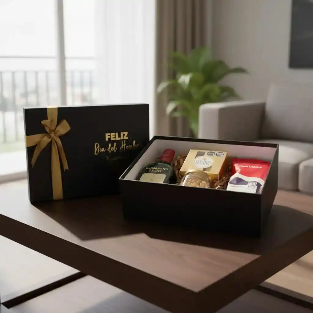 Incluye: Caja de lujo, Buchannas 375ml, Cafe Juan Valdez, Ferrero x 4 y frasco de Maní