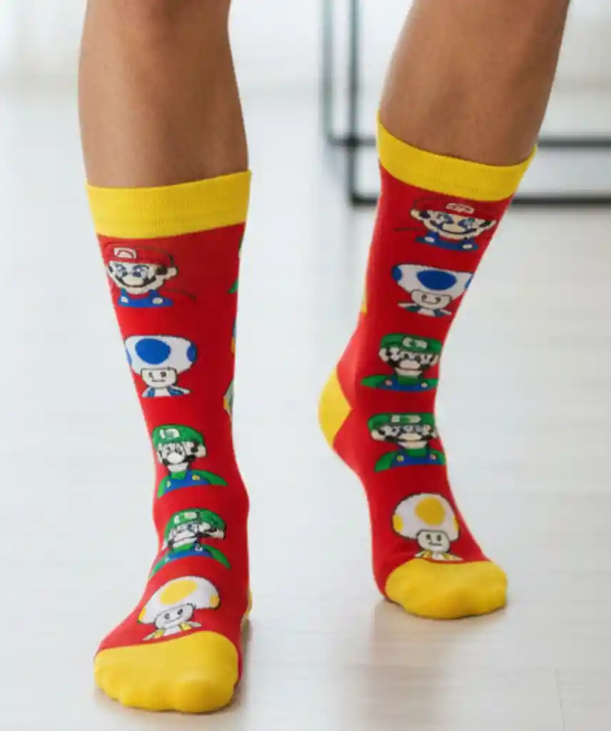 Regalo Calcetines Divertidos Animados Mario Bross rojo - amarillo